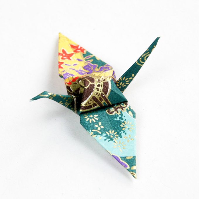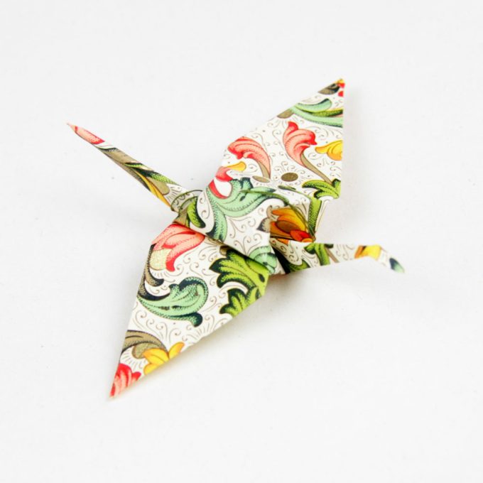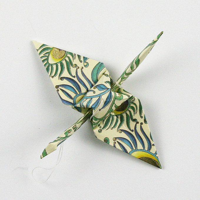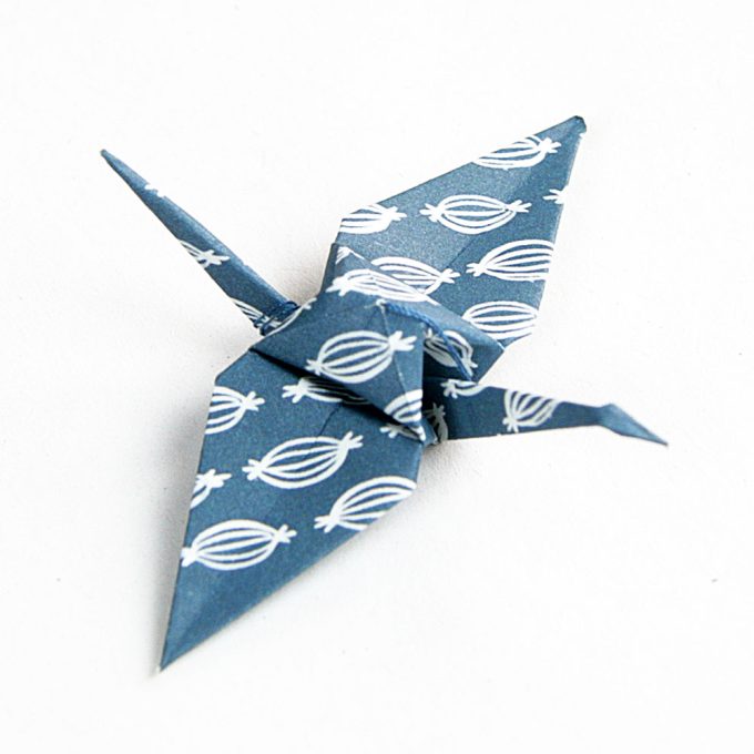 Zweimal im Jahr erfüllt sich die Luft an den Mecklenburgischen Boddengewässern mit den Schreien durchziehender und rastender Kraniche. Die handzahmen Glückskraniche werden mit der Hand gefaltet und auch mit der Selben in die transparente Schachtel gelegt. Die Artenvielfalt entsteht unter anderem aus verschiedem, feinstem japanischen Washipapier und fordert den Betrachter heraus, sein ureigenes Prachtexemplar zu wählen. Reisefertig verpackt und als Symbol für Glück – ein ideales Mitbringsel aus unserem Land.