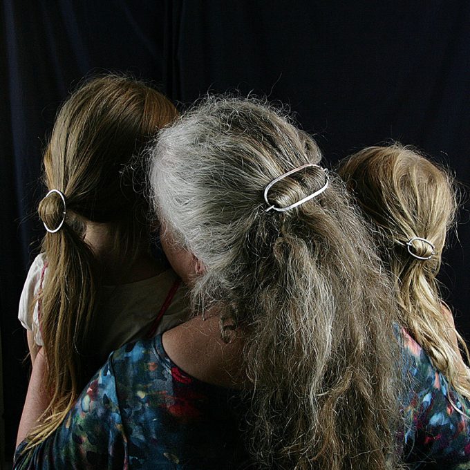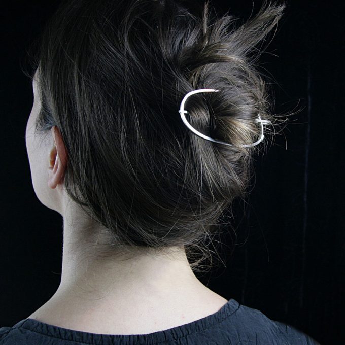 Die im Sonnenlicht schillernde Libelle siedelt gerne an stillen – und nur manchmal – tiefen Gewässern. Im keltischen Sprachraum zählte jeder sie zu den ganz kleinen fliegenden Drachen. Auf jeden Fall sind sie geheimnissvolle Wesen und erscheinen einfach immer gut gelaunt. Die silbernen Spange haben wir gebaut, da zu unserem Schmuck am Hals einer Trägerin Schnipsgummis oder gar Plastikhaarspangen nicht wirklich gut passen. Lange haben wir uns diesem Thema nicht annehmen wollen – Haarspangen aus Silber sind einfach zu aufwendig – dachten wir. Nun ist eine Libellenhaarspange nach dem Vorbild der dunkelbraunen Plaste-Haarspange aus den DDR-Drogerien entstanden. Neben der schönen Erinnerung, dass diese Libelle in der braunen Kunststofffarbe meiner Kindheit im EVP 1,50 Mark kostete und meine erste Haarspange war, finden wir alle gut, dass ein silberglänzendes einfaches Haarsteckteil entstanden ist. Sie regt zu vielen fröhlichen Frisuren an oder hält einfach nur den Pferdeschwanz. Ja … sie kostet nicht 1,50 Euro, aber ist dafür ein echtes Erbstück.